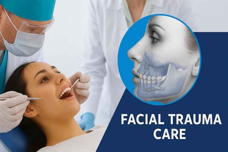 Facial trauma refers to injuries affecting the face, including fractures of the jaw, cheekbones, nose, or eye sockets. Such trauma can result from road accidents, sports injuries, falls, or physical assault — often leading to pain, swelling, and difficulty in basic functions like eating or speaking.